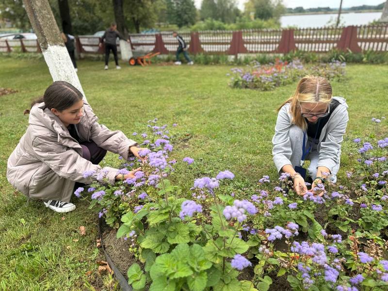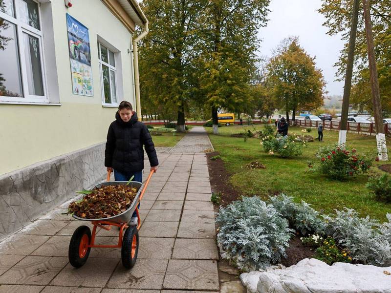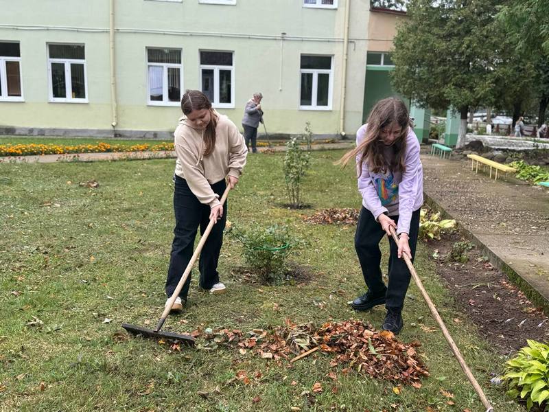 • Ученики и учителя вновь вышли на уборку школьной территории!