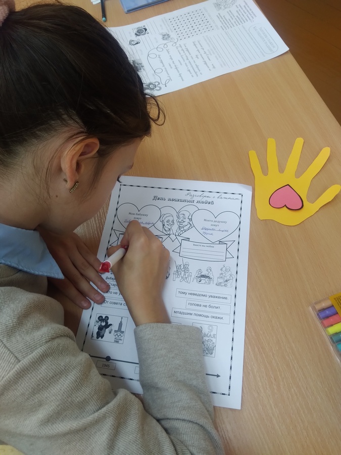 В осеннем календаре есть необычная дата, когда сердце переполняется чувством глубокой признательности, когда хочется говорить слова благодарности, быть особенно чуткими и внимательными к людям – это День пожилых людей. 27 сентября с учащимися 5 класса был проведён классный час «Добротой согретые сердца». Ребята рассказали о своих бабушках и дедушках, о тех добрых поступках, которые они совершают для них, порассуждали о понятии "милосердие", читали стихи о доброте и уважении к старшим, выполняли творческие задания. В честь праздника для бабушек и дедушек изготовили поздравительные открытки с пожеланиями и словами признательности.