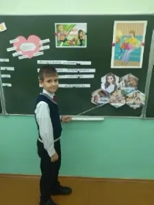 14 октября для учащихся начальных классов прошел урок доброты «Скажем маме мы спасибо!» Ребята читали стихи, составили «Словарик вежливых слов для мамы». Познакомились с притчей о материнской любви, собрали для мам букет из загадок про цветы и  ещё составили пословицы про маму. В завершении мероприятия изготовили  своими руками открытки для мамы.