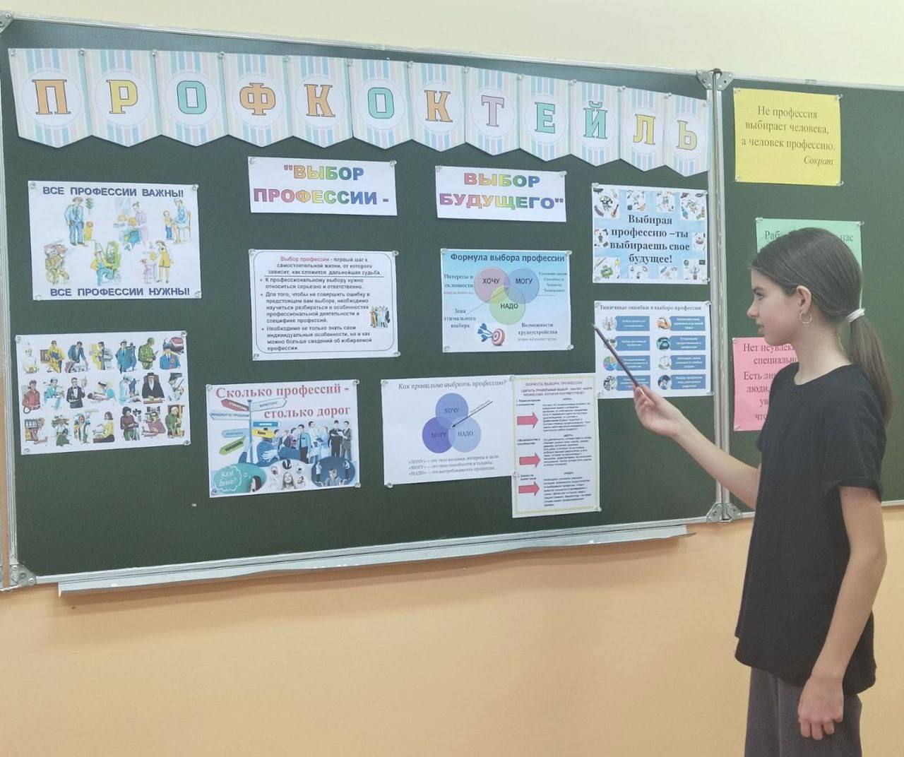 18 октября, в шестой школьный день, для 5-8 классов прошло мероприятие – профкоктейль «Выбор профессии – выбор будущего». В ходе мероприятия учащиеся пополнили знания о мире профессий, принимали активное участие в конкурсах, викторинах: «Найди профессию», «Собери пословицу», «Профессия на букву», «Подбери синонимы», «Профессия из ключевых слов» и др., рассказывали о профессиях своих родителей, о том, кем хотят стать в будущем.