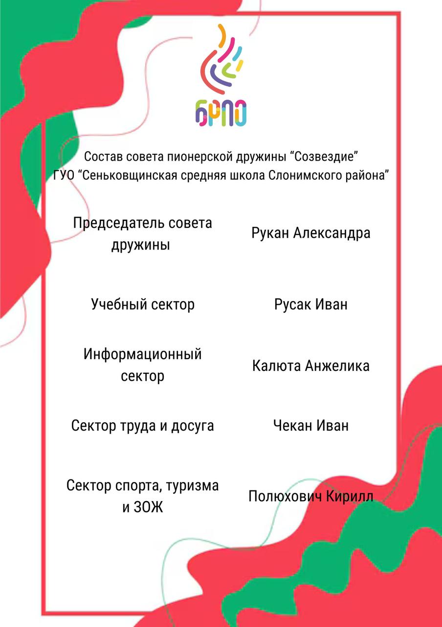Пионерская дружина «Созвездие» государственного учреждения образования «Сеньковщинская средняя школа Слонимского района»  насчитывает -- 56  человек