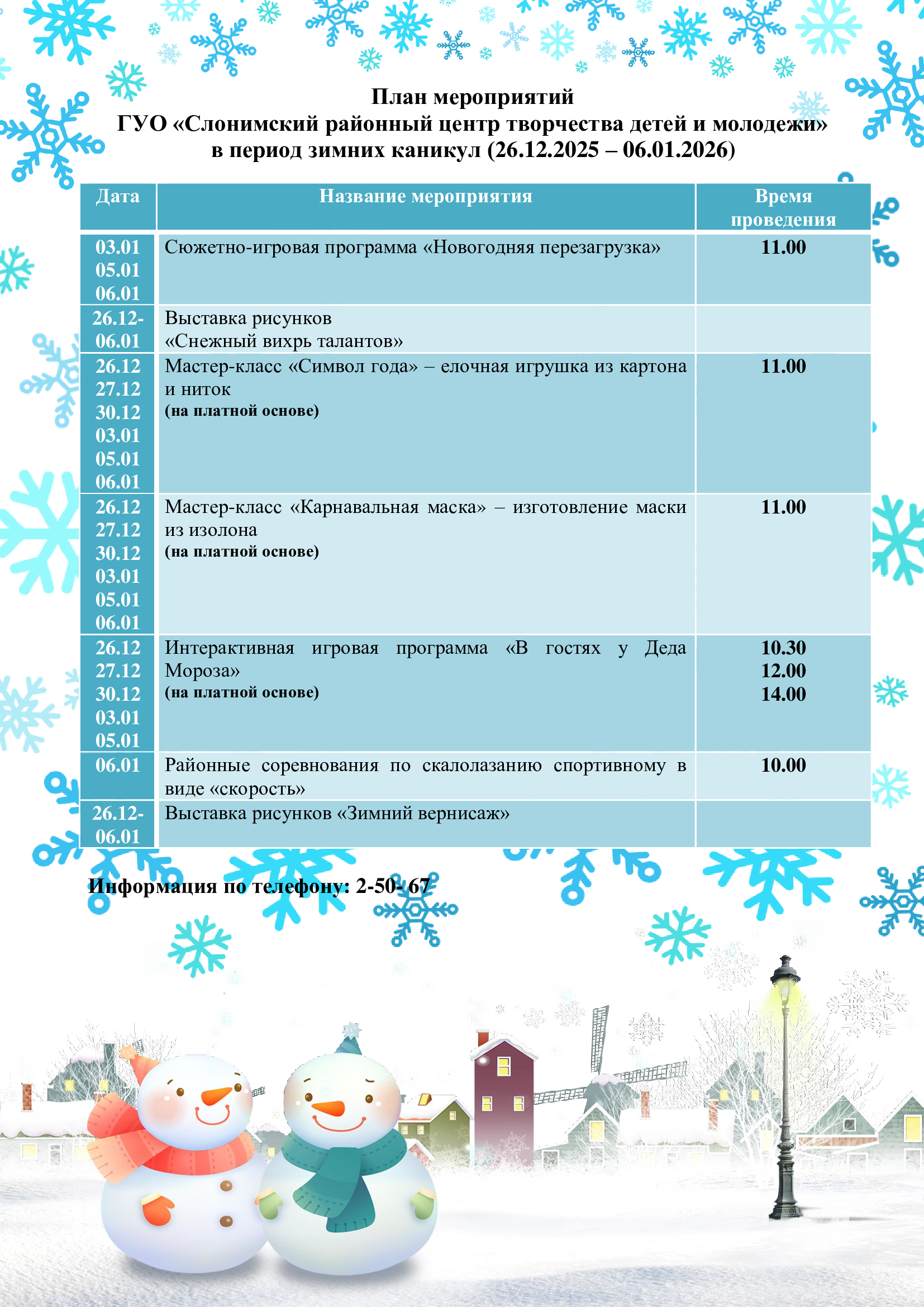 План воспитательной работы учреждения образования в период зимних каникул 2025/2026 учебного года смотреть