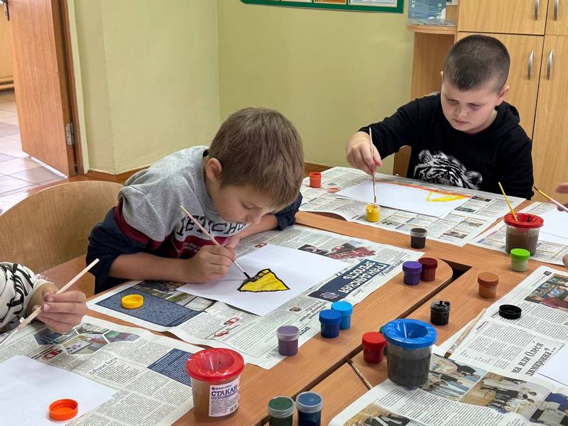 Творческая часть дня была посвящена символам Беларуси. В мастерской ребята своими руками изготовили изящные васильки. В своих работах для конкурса рисунков «Беларусь в моём сердце» дети выразили любовь к родному краю.