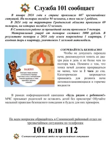 18.02.2026 на улице Доватора в Слониме произошел пожар в квартире многоэтажного дома. Сообщение на линию 101 поступило от очевидцев. Хозяйка квартиры рассказала, что на момент происшествия она была дома со своим внуком. Женщина прилегла отдохнуть, и через некоторое время 5-летний малыш сообщил о возгорании. Пенсионерка, собрав ребенка, вышла на улицу. Они не пострадали.