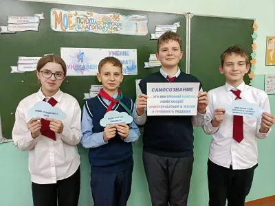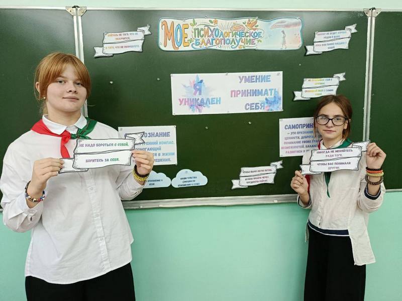 "Я уникален. Учимся принимать себя" под таким названием прошёл классный час в рамках занятия "Мое психологическое благополучие". Учащиеся 7 класса познакомились с понятиями "самопознание", "самооценка" и "самопринятие". В ходе занятия ребята выполняли задания, способствующие самонаблюдению, самоанализу, самооценке, учились формировать позитивное отношение к себе, к жизни, уважению к особенностям других, понимать и принимать себя, размышляли о ценности человеческой жизни и неповторимости своей собственной. В конце занятия были сформулированы важные мысли: каждый человек уникален, "нет на земле второго нас".