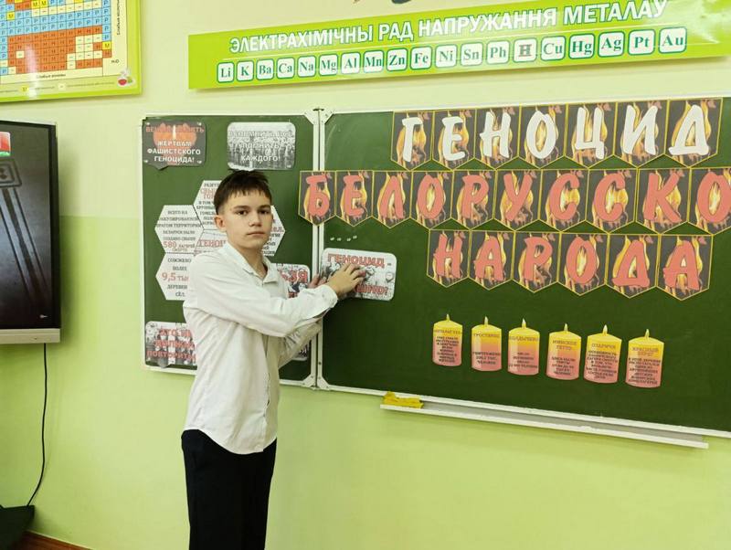 В ходе занятия учащиеся углубили знания о существовании на Беларуси свыше 580 лагерей смерти, вспомнили самые крупные - «Тростенец», «Озаричи», «Колдычево». Там проводились опыты, людей морили голодом, использовали как доноров крови (Красный Берег).