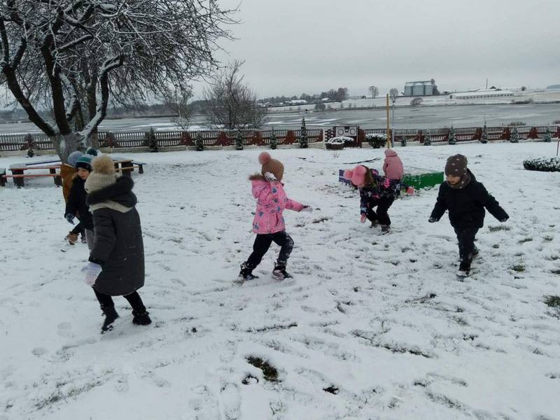 Первый снег выпал у нас! Сегодня ребята особенно торопились на прогулку, ведь выпал чудесный, волшебный снег, который они так долго ждали. Участки детского сада превратились в сказочную страну, в которой без устали играли в снежки, рассматривали снежинки на ладошке,очищали снег со скамеек. Дети учатся взаимодействовать с природой и приспосабливаться к условиям зимы. Наблюдения зимой  за состоянием погоды, природы воспитывают в детях внимательное и бережное отношение к окружающему миру. Детвора с увлечением и исследовательским любопытством играла с первым снегом. Вот такая у нас получилась чудесная, интересная и познавательная прогулка!