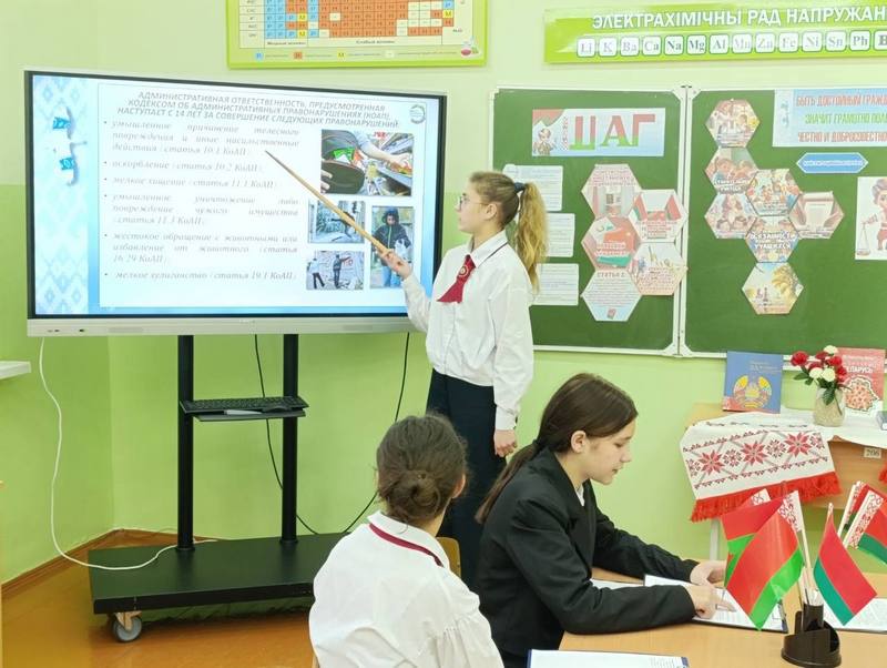 27 ноября в 8 - 9 классах прошел информационный час в рамках реализации проекта «ШАГ» по теме «Быть достойным гражданином Республики Беларусь – значит грамотно пользоваться своими правами, честно и добросовестно исполнять свои обязанности».