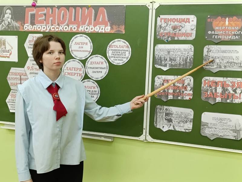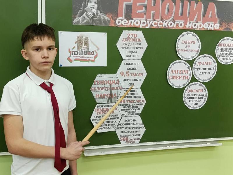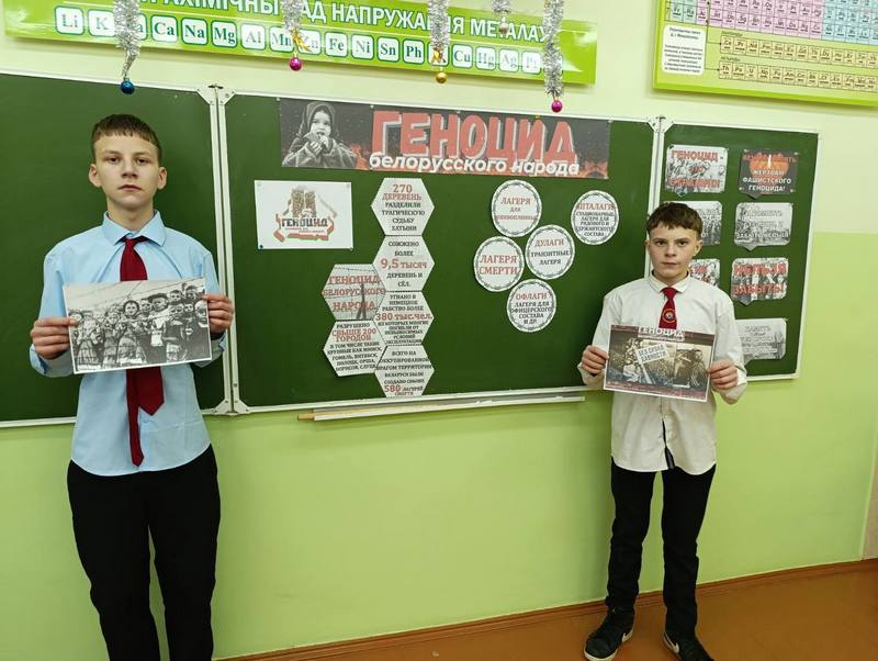 11.12.2025 года в 9 классе прошел тематический информационный час «Геноцид белорусского народа в годы Великой Отечественной войны» по теме «Карательные операции». Формирование исторической памяти молодого поколения – одна из важнейших задач, которые сегодня стоят перед школой. Учащиеся продолжали знакомиться с учебным пособием «Геноцид белорусского народа в годы Великой Отечественной войны» для 5-9 классов. В ходе занятия были освещены вопросы о ходе карательных операций на территории Беларуси и их последствиях, ребята посмотрели и обсудили фрагмент фильма АТН «Без срока давности. Хатынь». Использование фактических материалов, свидетельствующих о геноциде белорусского народа,, способствует формированию ценностного отношения учащихся к историческому прошлому своего народа, усиливает эмоциональное восприятие информации, вызывает эмоциональный отклик.