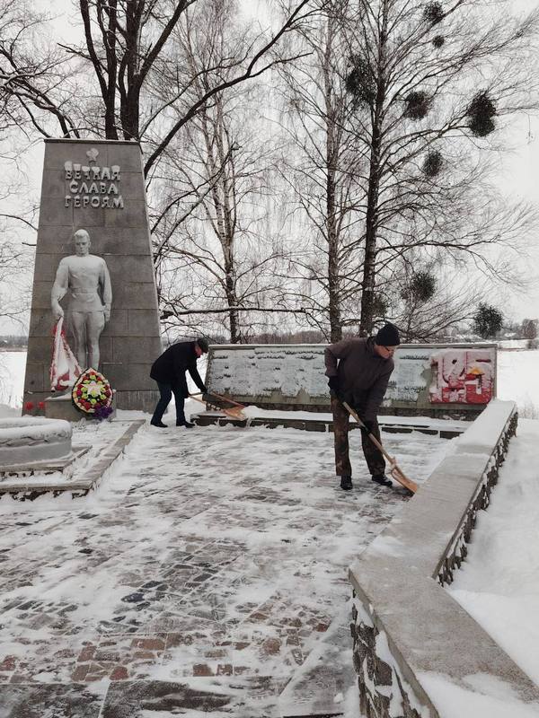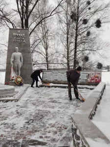 10.01.2026 учителя и учащиеся нашей школы вышли на расчистку мемориальной зоны. Силами работников и учащихся учреждения была очищена от снега территория захоронения воинов, погибших в годы Великой Отечественной войны в агрогородке Сеньковщина. Для нас это не просто уборка, а дань уважения тем, кто сражался за наше мирное небо. Несмотря на капризы погоды, памятные места всегда должны оставаться в надлежащем состоянии.