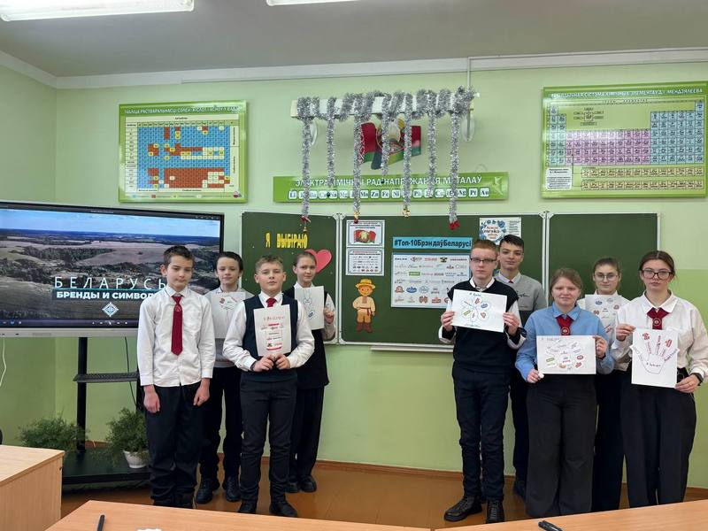 16 студзеня, у рамках рэспубліканскага праекта “Кожная пятніца – роднае сваё”, для вучняў 5 – 9 класаў прайшла цікавая і пазнавальная гадзіна зносін “#Топ-10БрэндаўБеларусі”. У ходзе мерапрыемства ўдзельнікі выказалі свае думкі і прапановы пад час прагляду відэароліка “Беларусь: бренды и символы”, прынялі актыўны ўдзел у інтэрактыўнай віктарыне, у выглядзе калажу аформілі рубрыку “Я выбіраю” сваімі любімымі брэндамі.