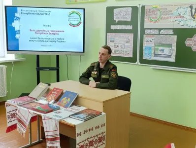 29 января в рамках информационно-образовательного проекта «ШАГ» - «Школа Активного Гражданина» - в 8-9 классах прошел тематический информационный час «Быть достойным гражданином Республики Беларусь – значит быть готовым в любую минуту встать на защиту Родины».  Гостем встречи был заместитель командира по идеологической работе батальона материального обеспечения Бобко Глеб Юрьевич.