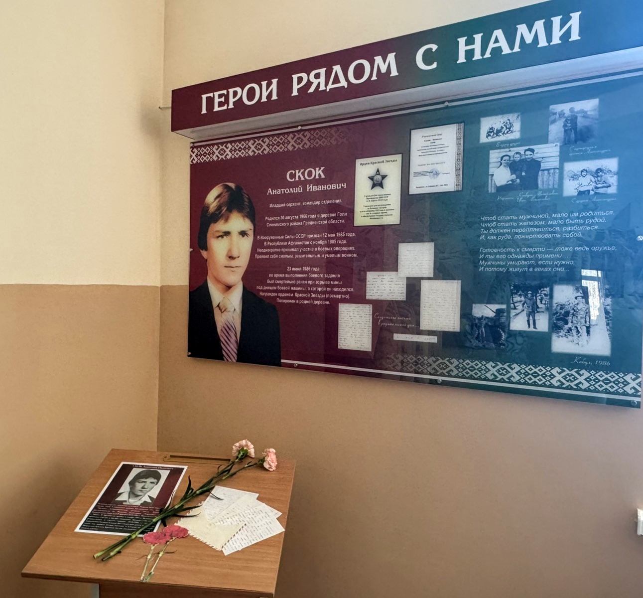 В этот день учащиеся Сеньковщинской СШ вспоминали подвиг юного афганца, земляка - Скока Анатолия Ивановича, жизнь которого оборвалась в далеком 1986 году. Ему было неполных 20 лет. Его мечты оборвал осколок разорвавшейся рядом мины. Посмертно Анатолий Иванович награждён орденом Красной Звезды.