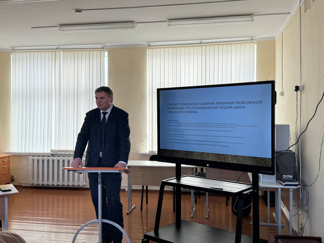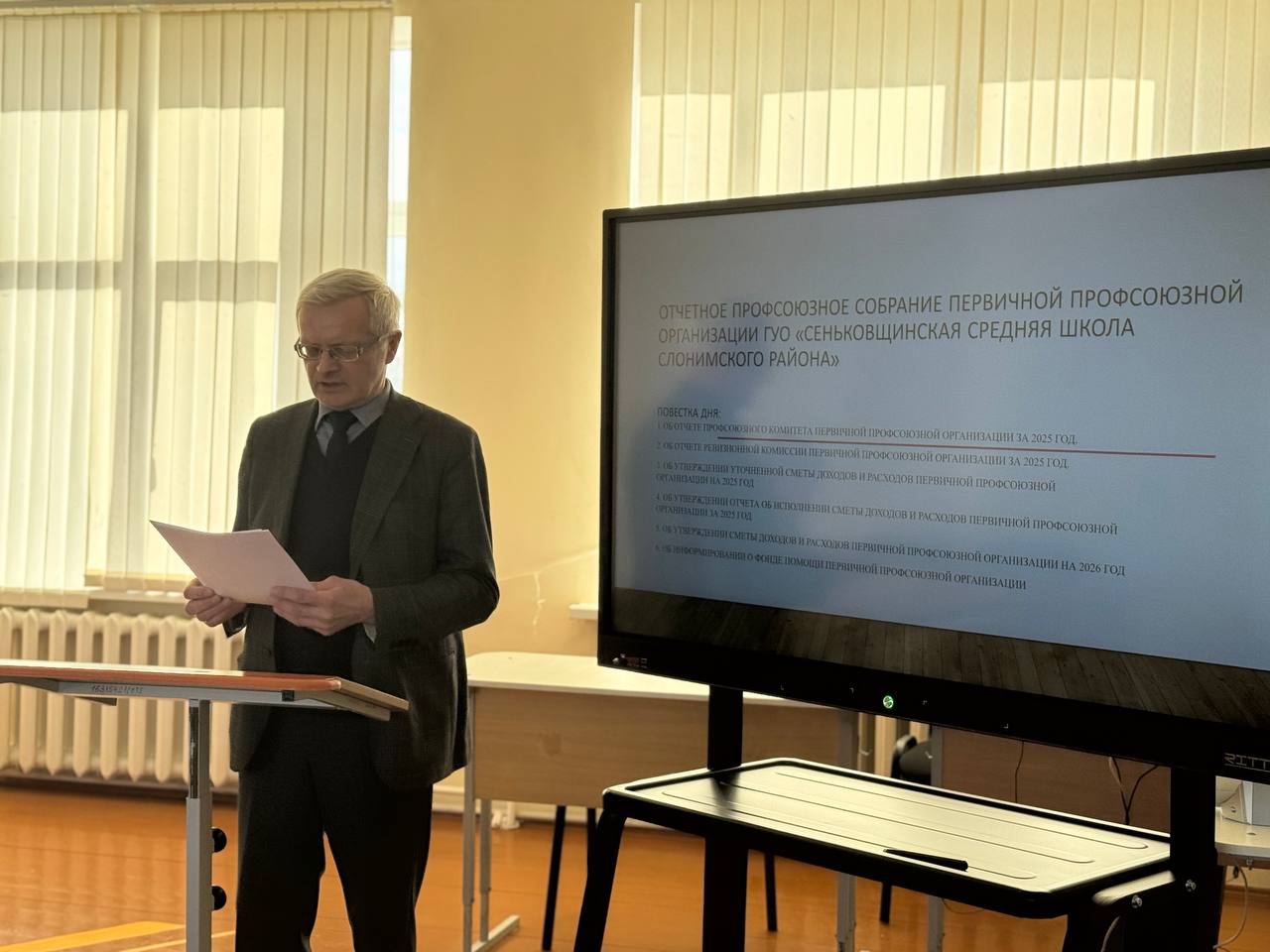 2 марта в ГУО "Сеньковщинская средняя школа Слонимского района" состоялось отчётное профсоюзное собрание. На собрании одобрена работа профсоюзного комитета за 2025 год, утверждён отчёт работы ревизионной комиссии.  Членам профсоюзной организации предоставлен отчёт доходов и расходов за 2025 год. Определены цели и задачи на 2026 год.