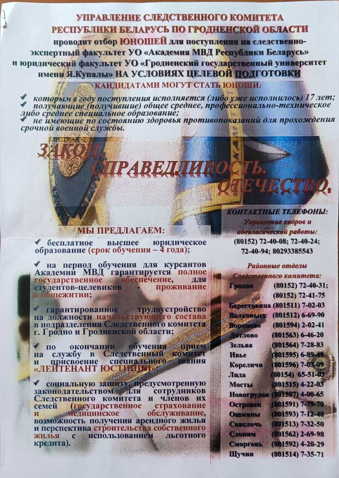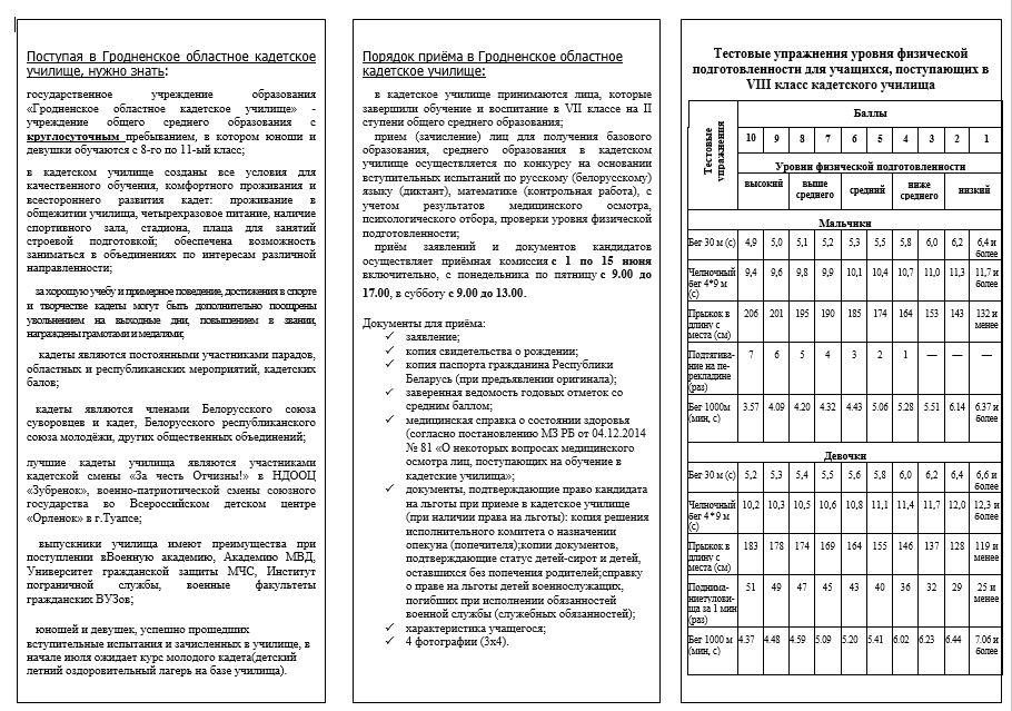 ГОСУДАРСТВЕННОЕ УЧРЕЖДЕНИЕ ОБРАЗОВАНИЯ "ГРОДНЕНСКОЕ ОБЛАСТНОЕ КАДЕТСКОЕ УЧИЛИЩЕ" перейти
