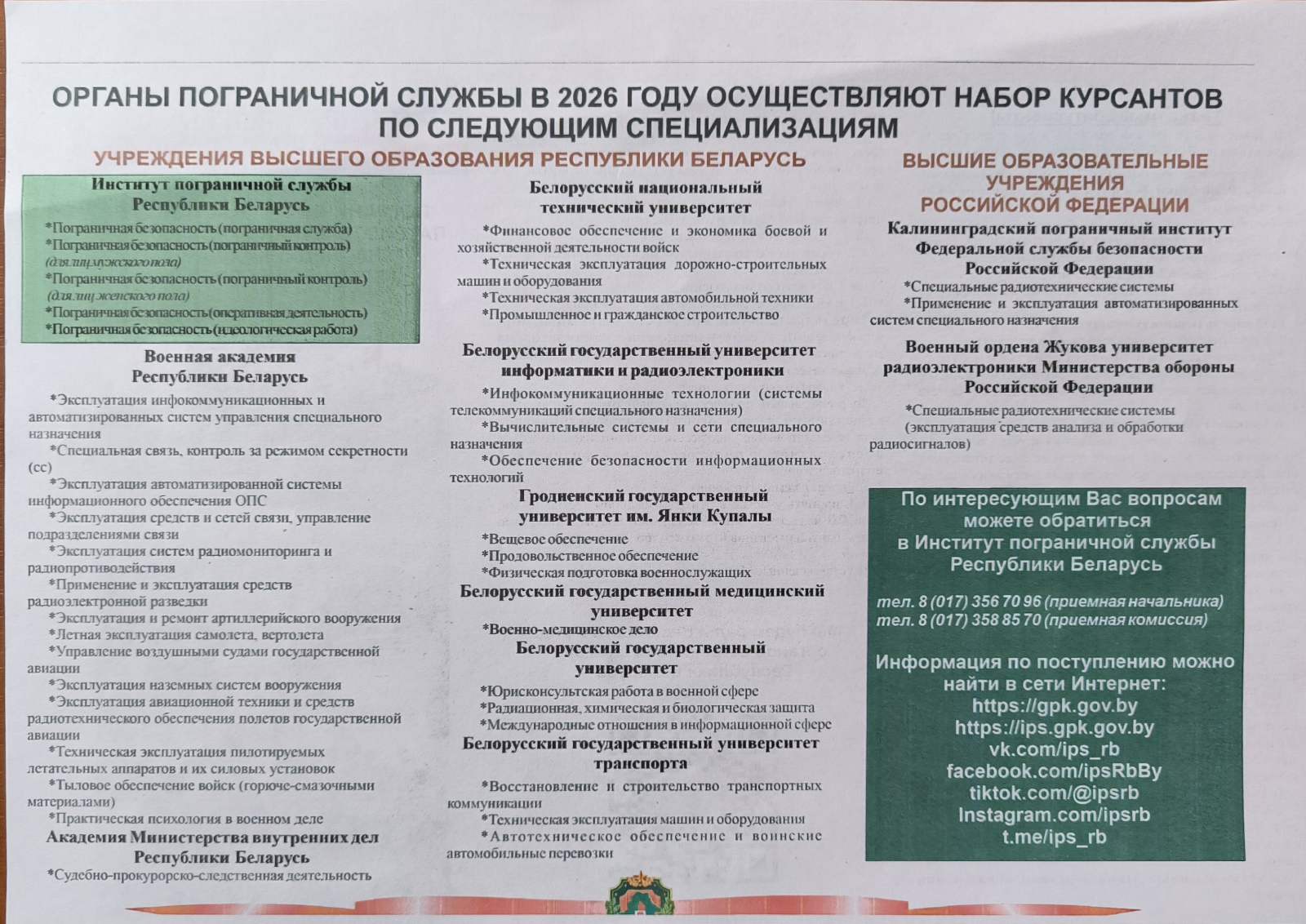 КАК СТАТЬ ВОЕННЫМ ФИНАНСИСТОМ (БНТУ, ВОЕННО-ТЕХНИЧЕСКИЙ ФАКУЛЬТЕТ) перейти
