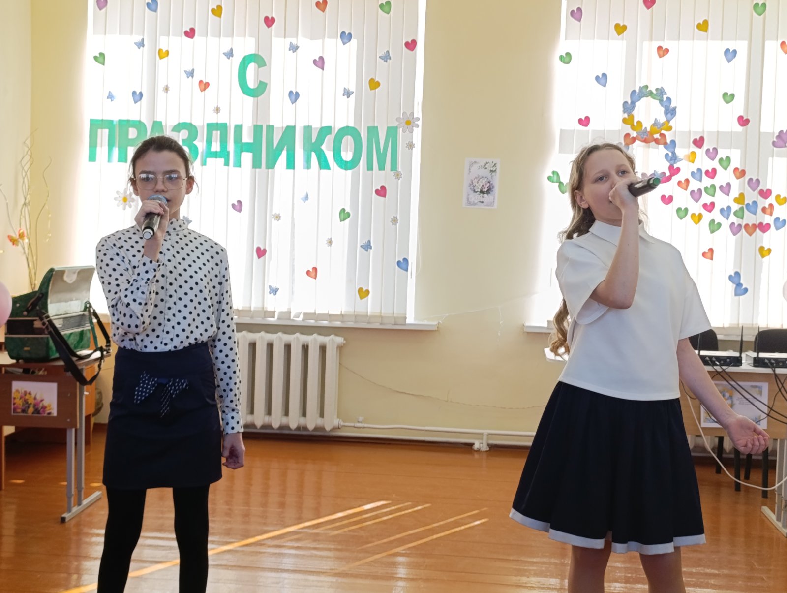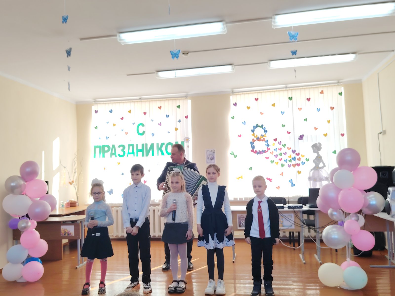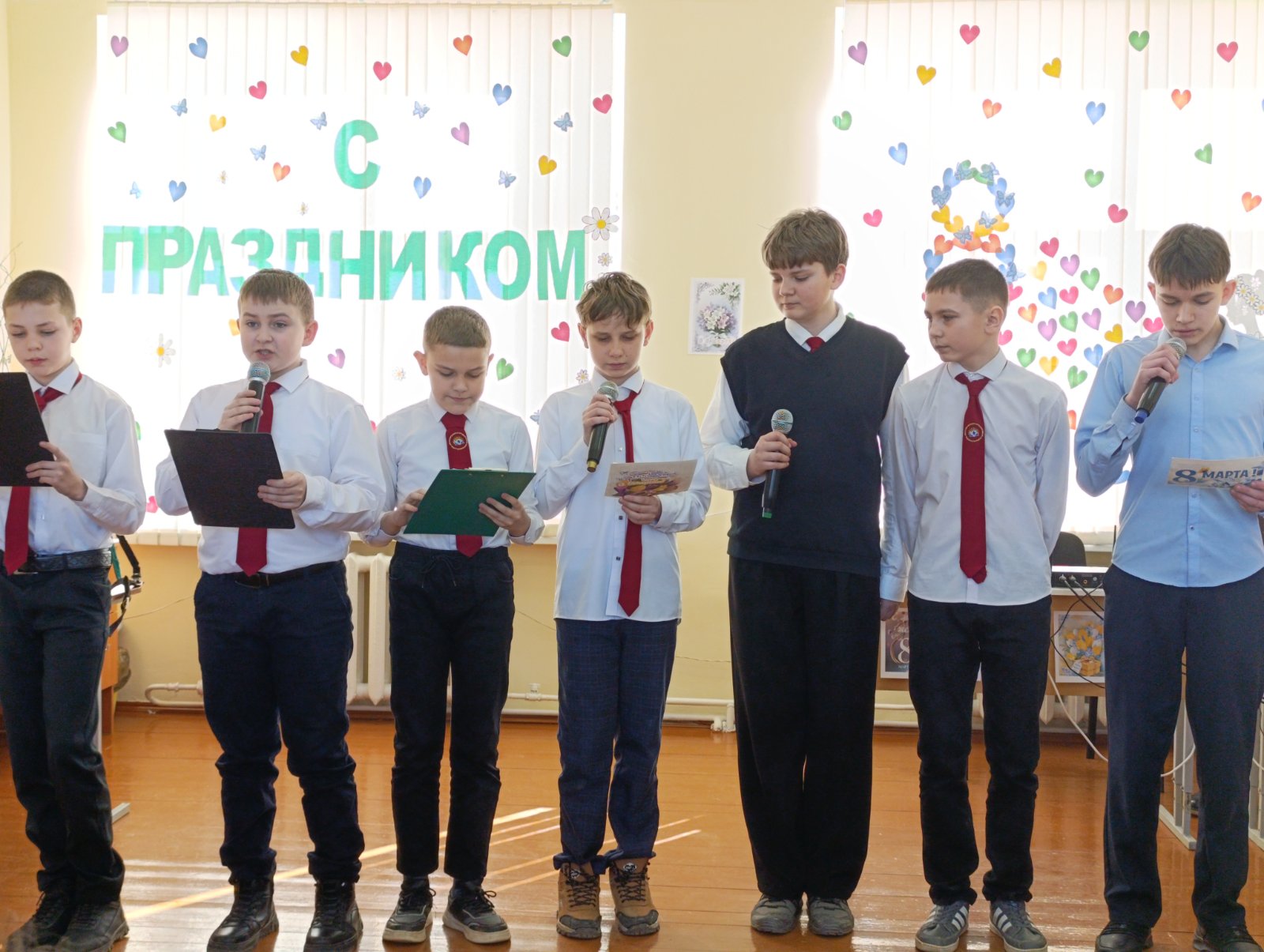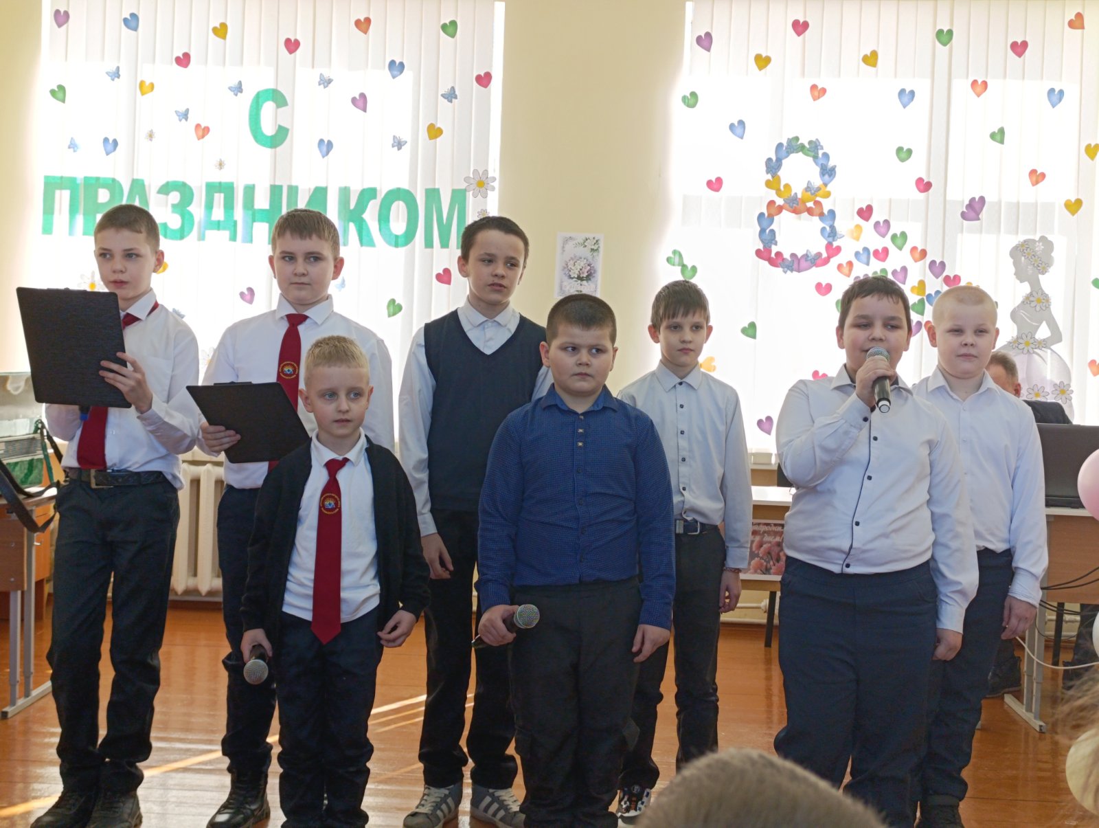 В преддверии первого весеннего праздника в нашей школе по традиции прошел праздничный концерт, посвященный Международному женскому дню 8 Марта. Учащиеся подготовили вокальные номера, которые подарили всем присутствующим много приятных эмоций. Ребята в этот день старались подарить педагогам и девочкам свою радость, благодарность и доброту. От имени мужчин прекрасную половину человечества поздравил руководитель по ВПВ Правдик В.В. Праздник получился по-настоящему теплым, весенним и радостным. Зрители получили заряд оптимизма и весеннего настроения!
