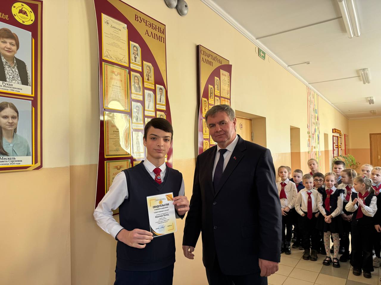 На «Олимпах» - фотографии и имена лучших учеников - победителей предметных олимпиад, научно-исследовательских конкурсов и спортивных соревнований за 2025 год. Ребятам были вручены свидетельства о признании их успехов в учебной и спортивной деятельности.