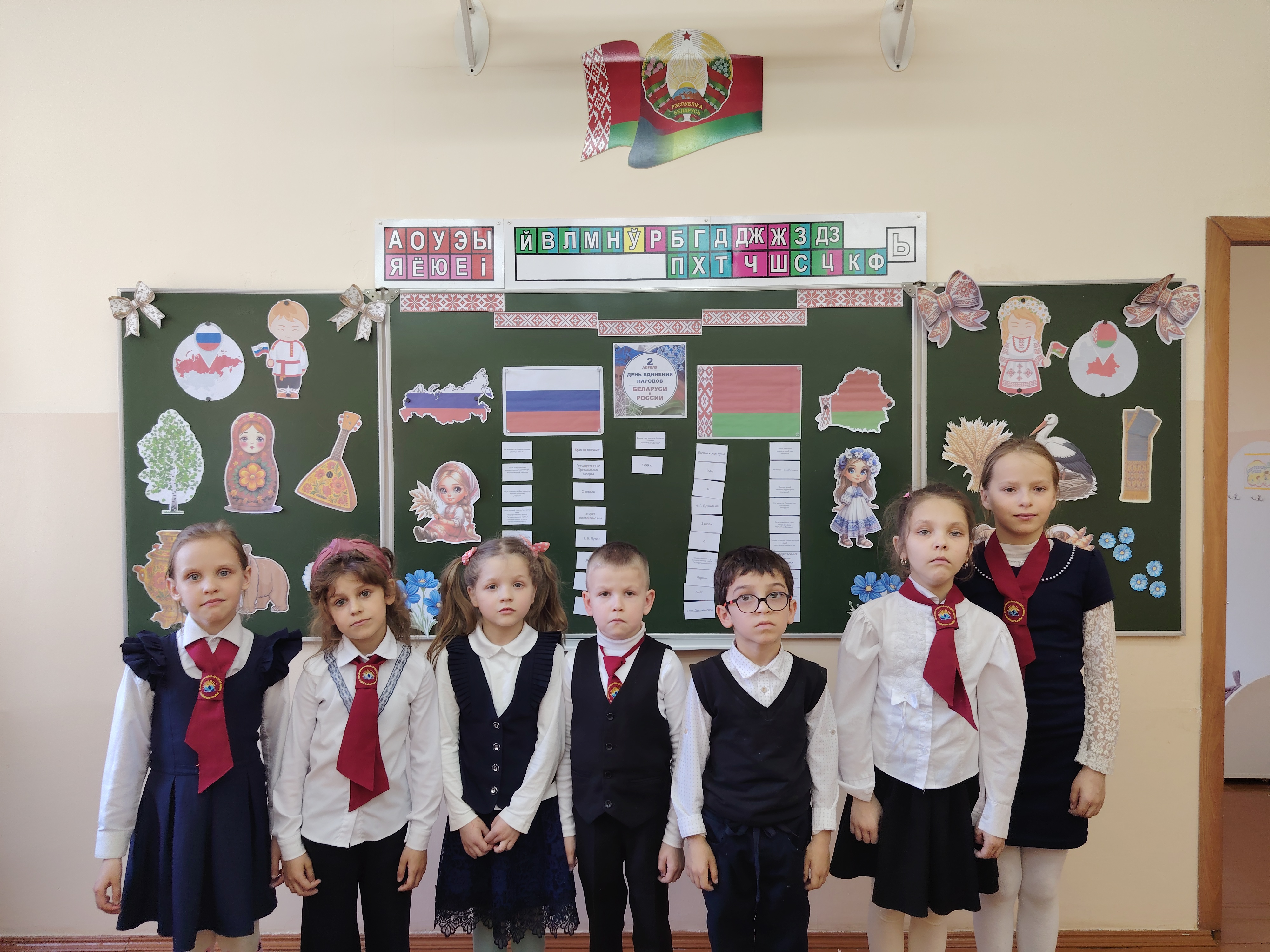 2 апреля в 1 классе прошёл особенный урок, посвящённый Дню единения народов Беларуси и России. Чтобы такая серьёзная дата стала понятной первоклашкам, мы начали с самого важного — обсудили значение слов. Что такое «единение»? Вместе с ребятами мы пришли к выводу, что это прежде всего крепкая дружба наших народов, взаимопомощь и общие корни. Мы говорили о том, в чём проявляется эта дружба в жизни и почему нашим странам так важно быть добрыми соседями и партнёрами.